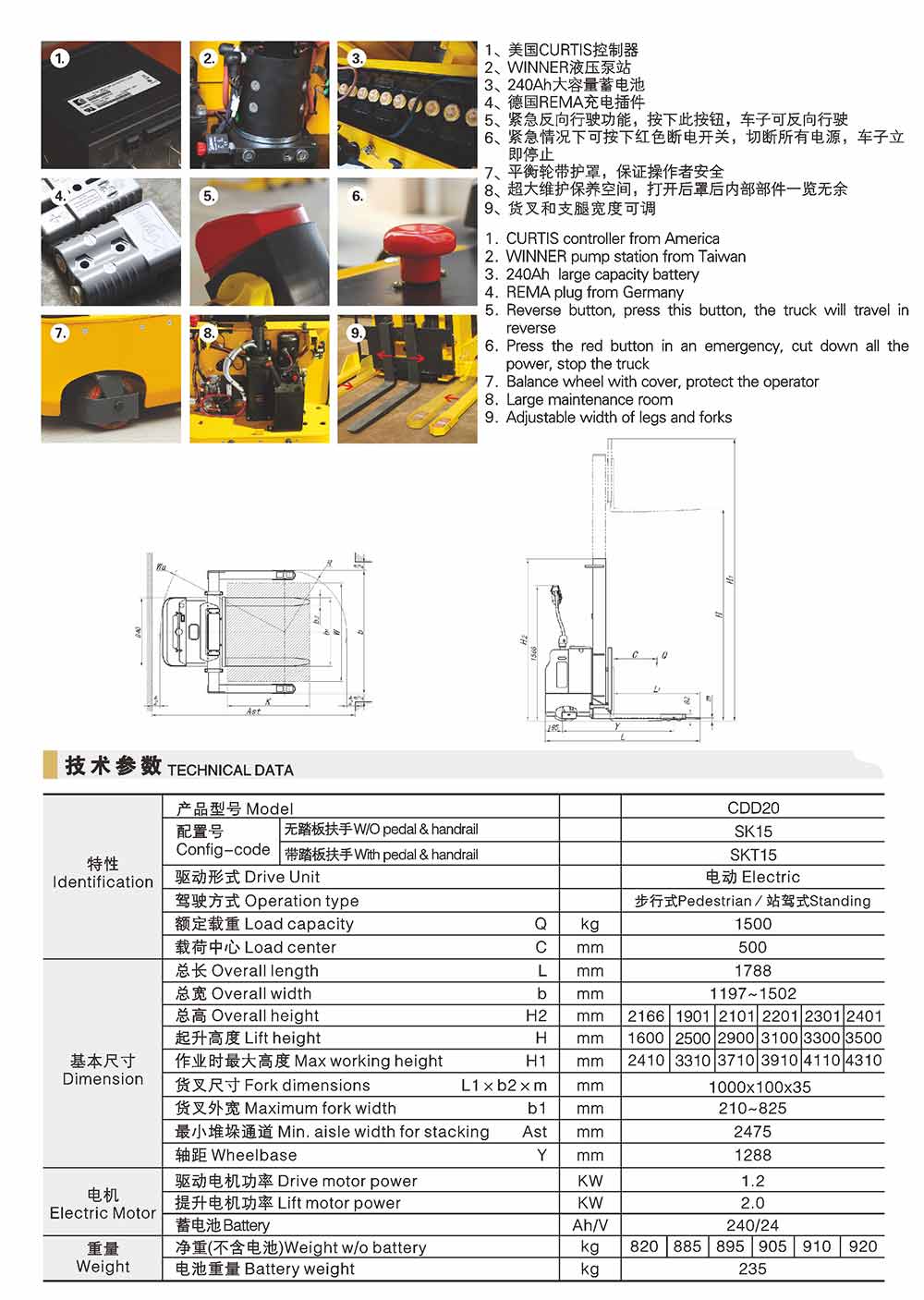 CDDSK寬支腿全電動(dòng)堆垛車
